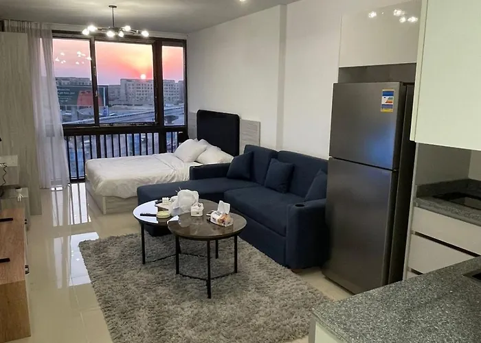 En este establecimiento hay una cocina completa. También puedes llegar al aeropuerto El internacional del Cairo en 27 minutos en coche. Este apartamento también recibe a sus huéspedes con una piscina.